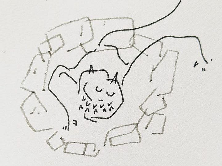 And there he was, a little dark-grey man, kind of burly, eyes closed like a monk, curled up in himself like a baby, with his tail wrapped around.